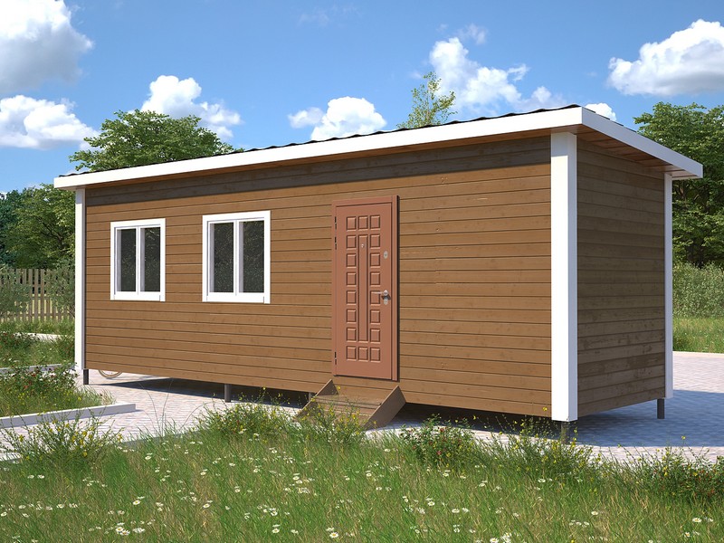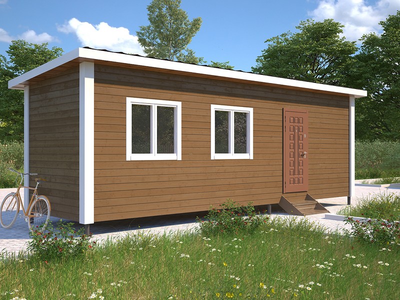 Небольшой дачный домик «Турист 7х2,3» – простое, но очень практичное решение для организации зоны отдыха на дачном участке. Площадь строения составляет 16,1 м2, внутри предусмотрено два помещения, которые при желании можно зонировать дополнительно.