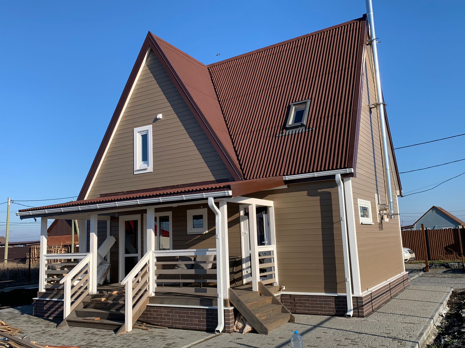 В результате получился великолепный каркасный дом в два этажа.
